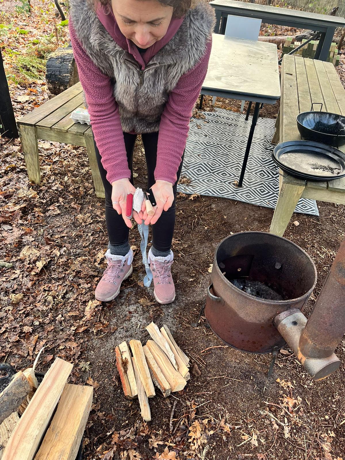 Hout hakken, vuur maken, drankje drinken, genieten, gesprekken houden, elkaar inspireren... gewoon zijn.