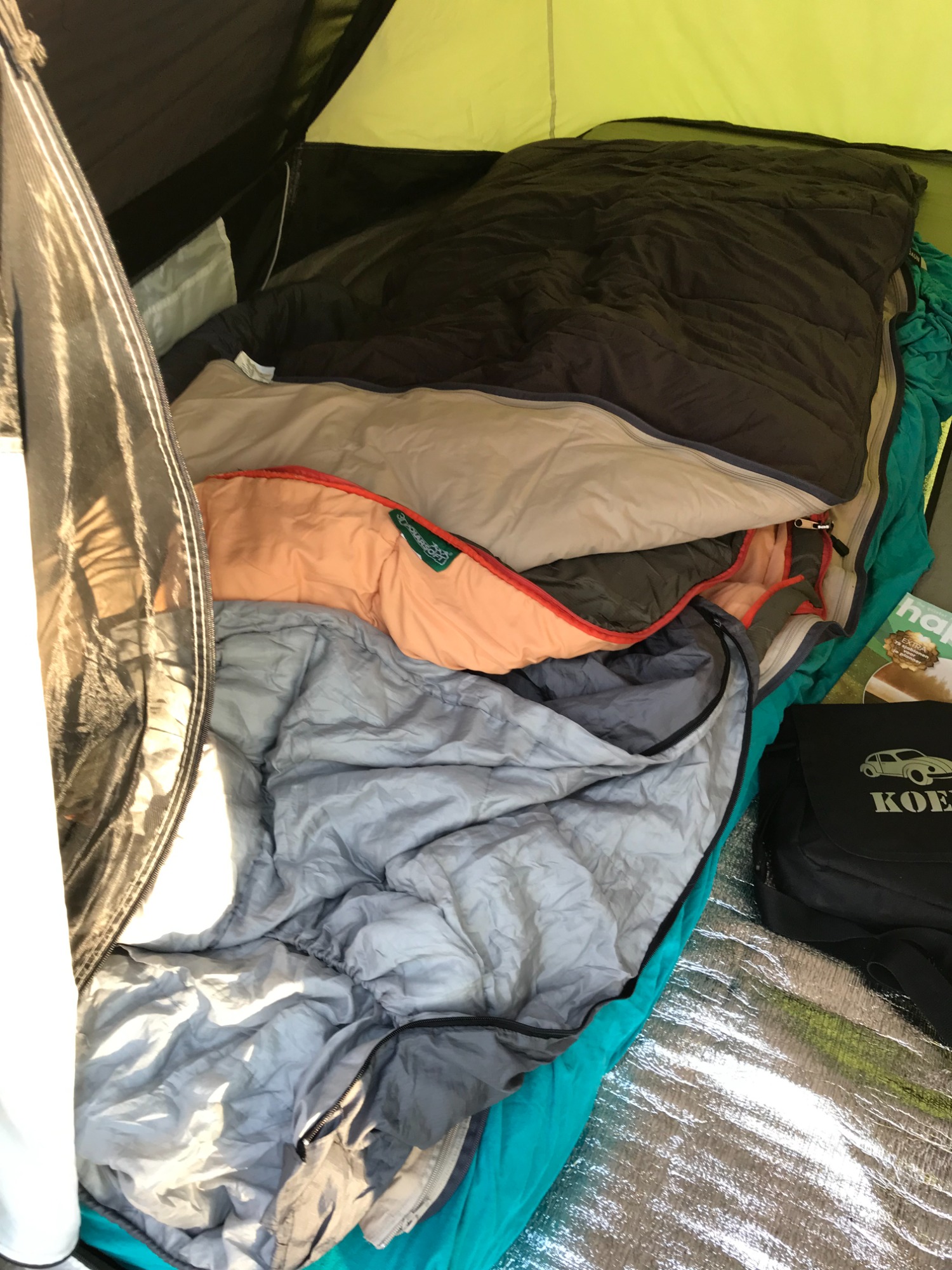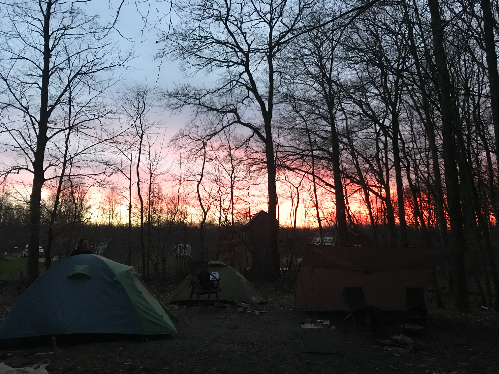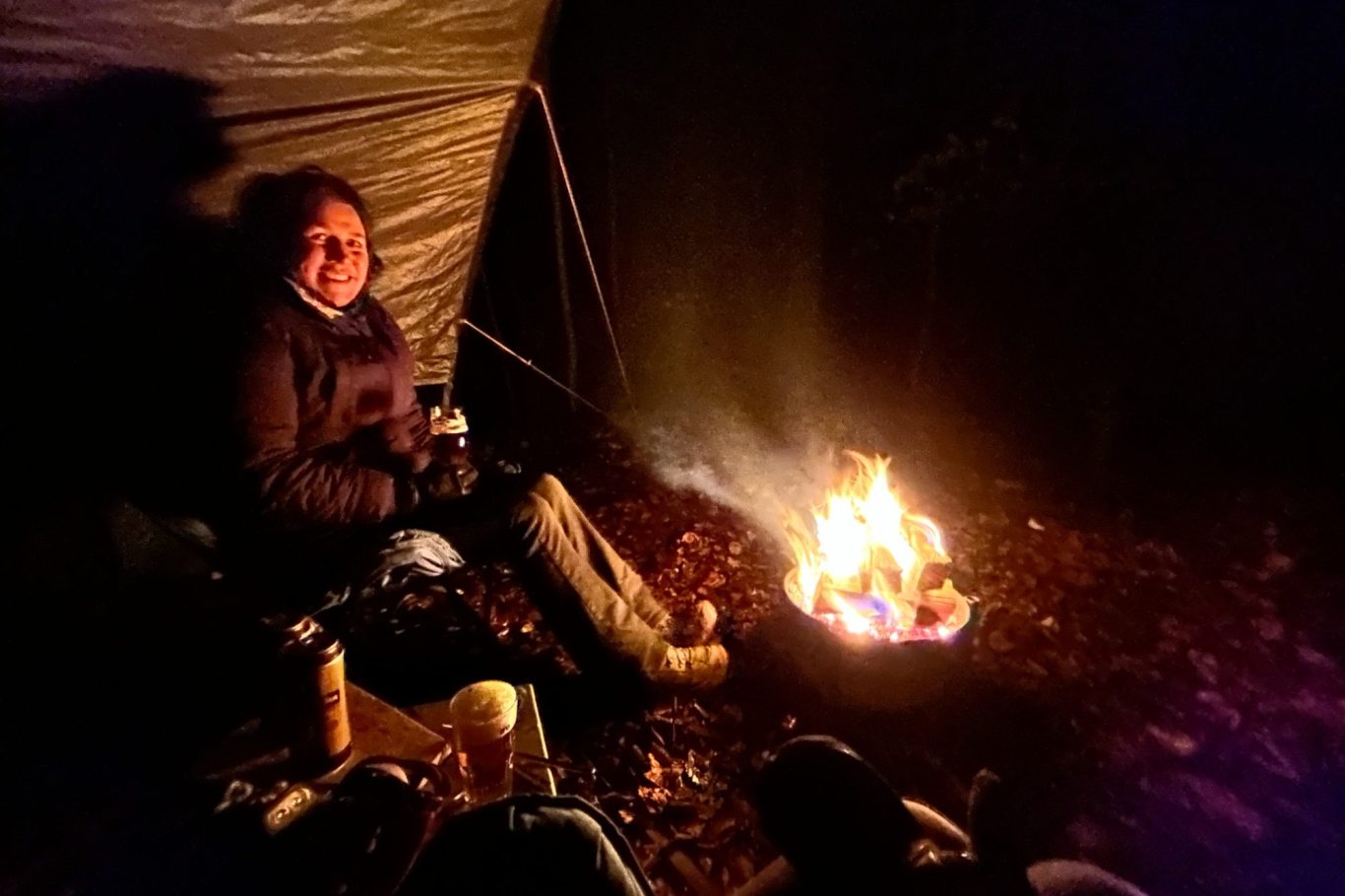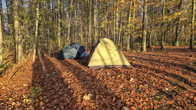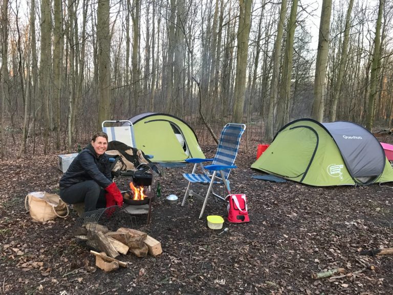 Slapen in een tent, koken op het kampvuur.