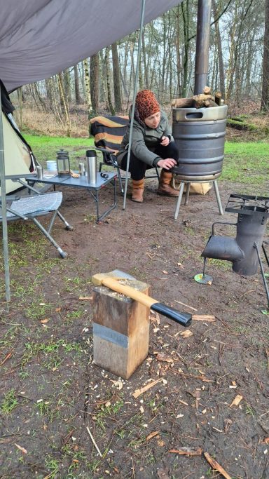 Hout hakken, vuur maken, drankje drinken, genieten, gesprekken houden, elkaar inspireren... gewoon zijn.